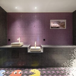 Spread across 3 floors, this truly unique 380m² chalet is part of the luxury Black Diamond residence that stands in a commanding position overlooking the resort of Tignes les Brévières. A tribute to the British street art artist, Chalet DIAMOND is embroidered with multiple decals representing his most famous works and dotted with inspired objects throughout.