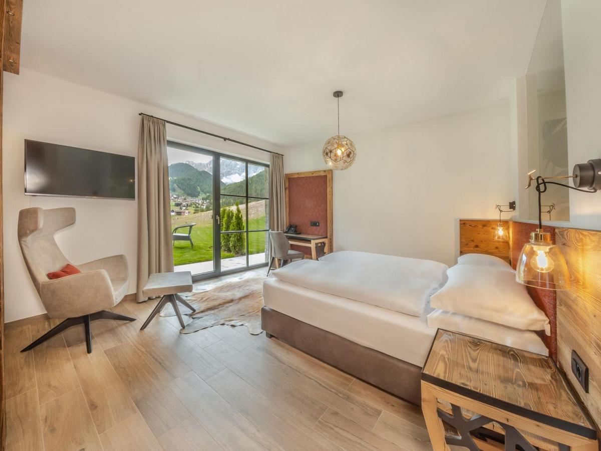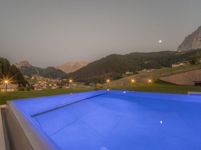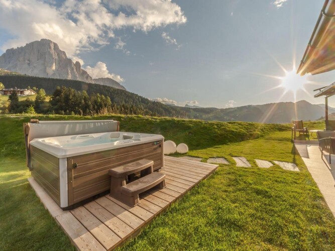 Perched on top of a hill, the views are simply breath-taking, with the village of Selva and the Sella Massif to the east, the dramatic Sassolungo to the south and the Pic to the North. There really is no better view to wake up to.