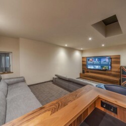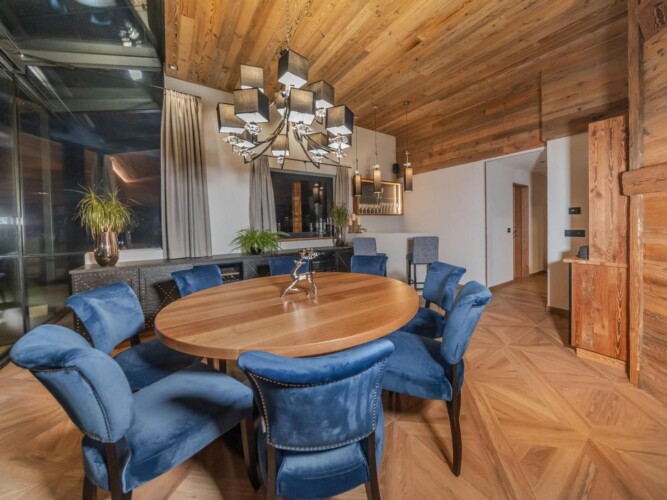 Chalet’s guests can revel in the chalet’s private spa area, complete with Finnish sauna, Infrared sauna, wellness shower and panoramic relaxation area. An outdoor Jacuzzi also features for ultimate relaxation. The entertainment room, featuring a pool table, bar and TV lounge area, is the ideal setting to continue unwinding in the evening, following on from your post-ski spa session.