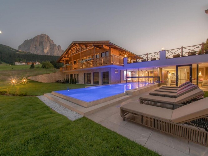 An impressive 280m² luxury ski chalet located in the Dolomiti ski region, offers guests the opportunity to take advantage of incredible hotel service and facilities, whilst maintaining their own privacy in their very own luxury catered ski chalet.