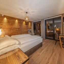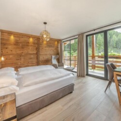 In total, accommodates up to 8 guests across its 4 comfortable suites, perfectly positioned to admire the breath-taking views over the village and the Sella Massif beyond. Each en-suite bedroom can be configured as a double or twin, ideal for groups of friends looking for a luxury ski holiday in Italy. Guests staying in the bedrooms on the first floor also have the additional advantage of balcony access and a seating area, perfect for enjoying a coffee from in the warmer temperatures of the season.