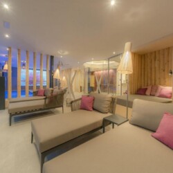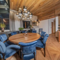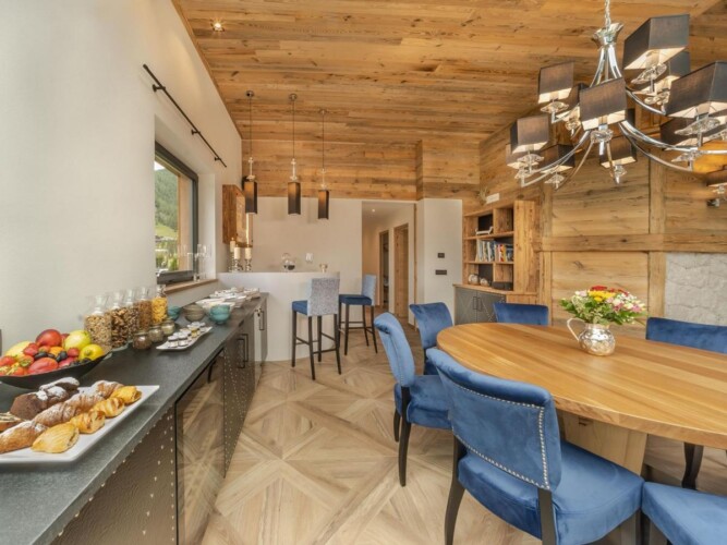 The elegant yet rustic furnishings fitted throughout this property, present guests with a chance to experience luxury living in true Alpine chic style. The warmth and crackle of the log fireplace creates an inviting atmosphere to relax, as high ceilings tower above the spacious open-plan living spaces. Large windows occupy the space with ample amounts of light, whilst also framing the sensational Sella Massif and valley views outside. At the end of the day, satisfy the group’s appetites to the appetizing 5-course evening meal prepared by your private chef. After dinner, relax with a glass of something nice from the chalet’s wine cellar.