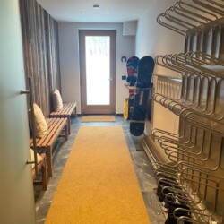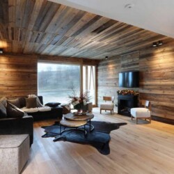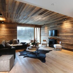 The ground floor is home to a heated ski room and there’s a private garage with parking for up to seven vehicles.