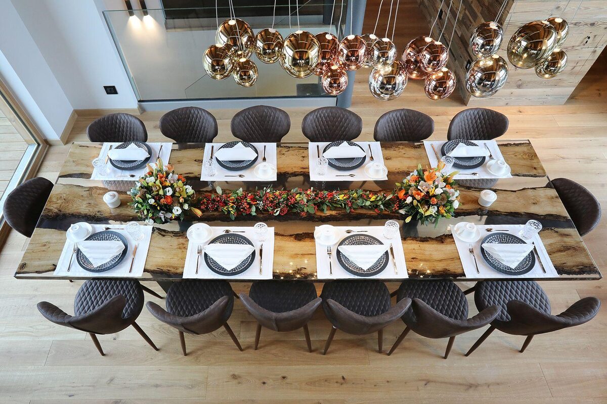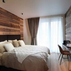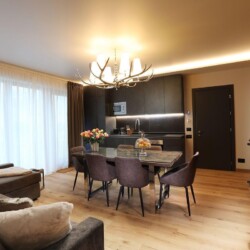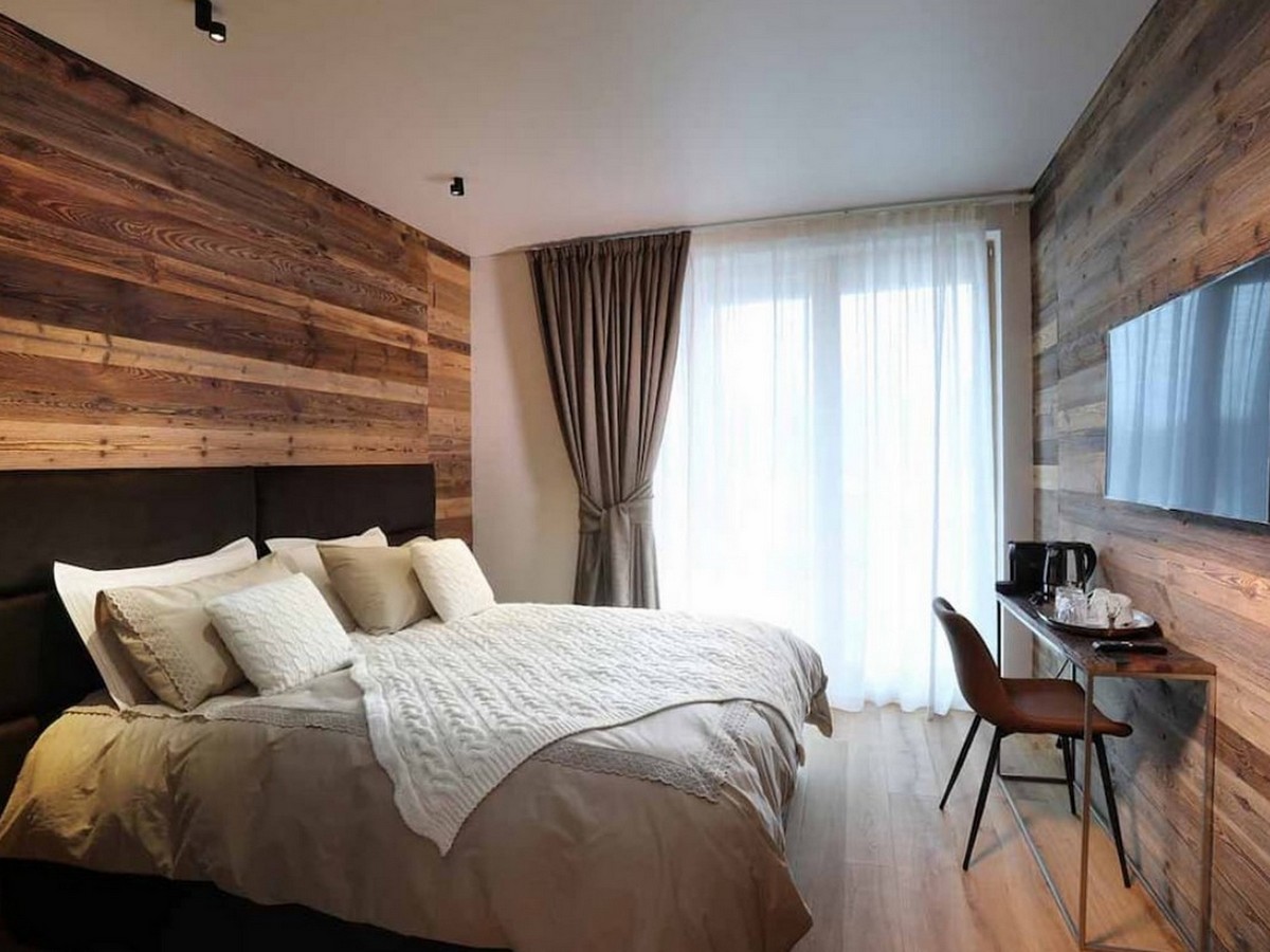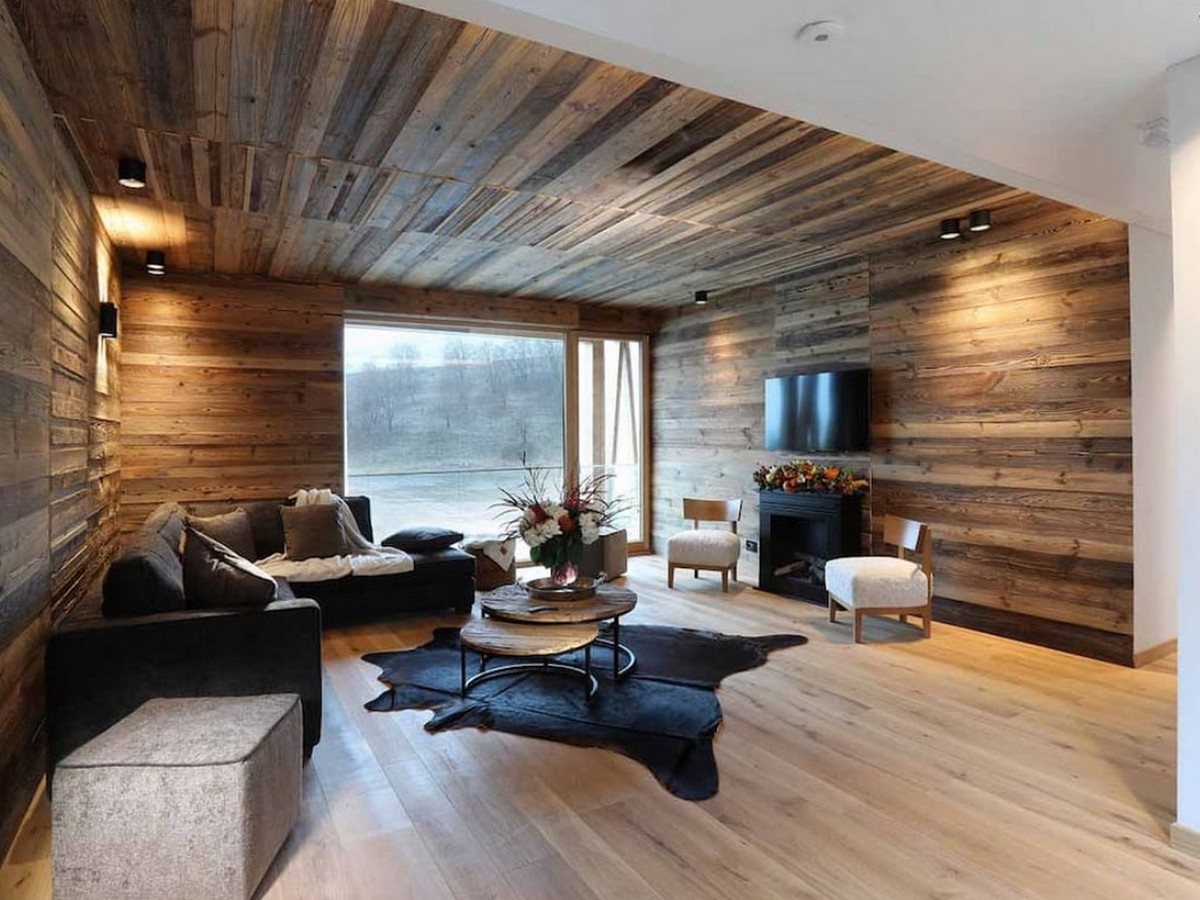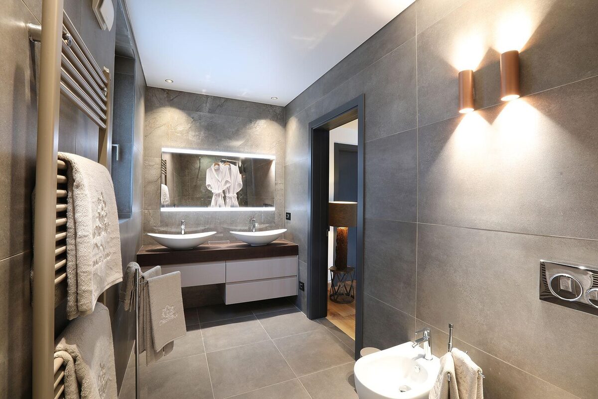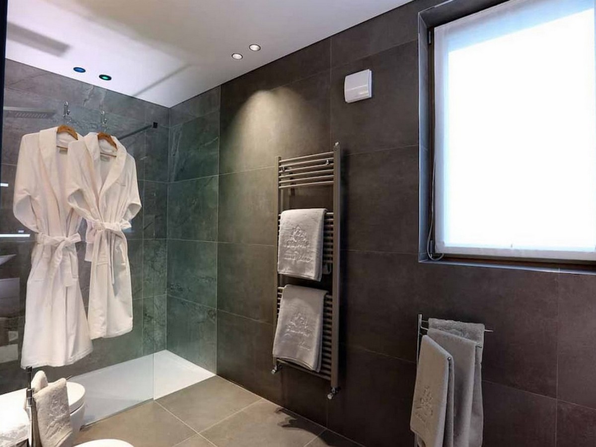 Set over four floors connected by an elevator, the chalet is accessible to those with disabilities. As you enter the chalet on the first floor you are greeted by a cosy lounge with a bioethanol fireplace. You will find the main living area on the top floor of the chalet. With windows over six metres high, comfortable sofas, a fireplace and TV, this is certainly an impressive spot to relax after a day on the slopes.