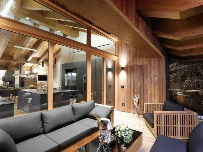 Ideally located just 100 metres from the main pedestrian street and golf course and 150 metres from the ski lifts, Chalet is perfectly placed to enjoy all that Cervinia has to offer. The ecological wooden structure is architecturally striking with rooms swathed in glass providing a gateway to panoramic views. The chalet was built using mostly natural materials from renewable sources, such as wood that has reduced consumption and very low CO2 emissions.