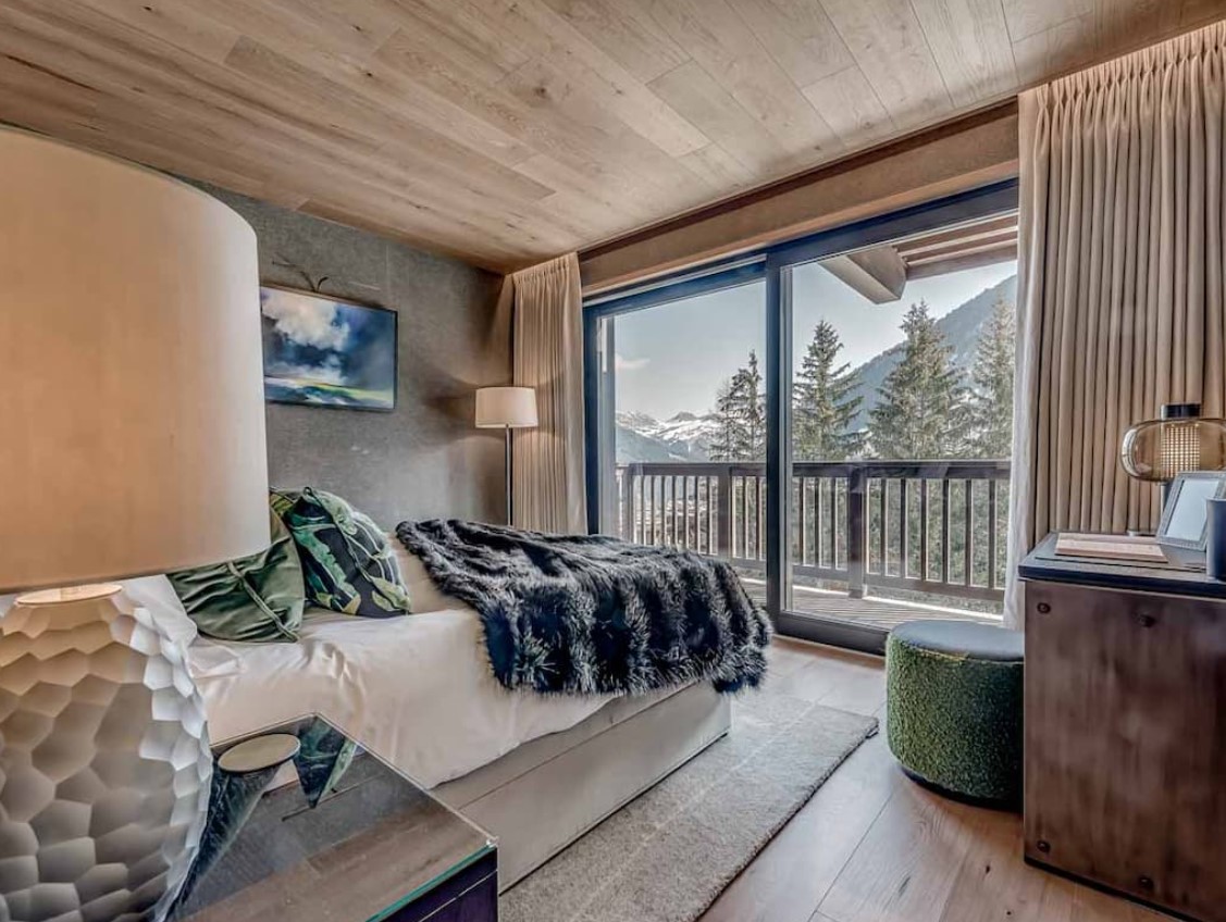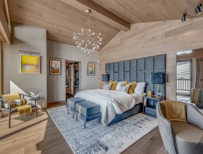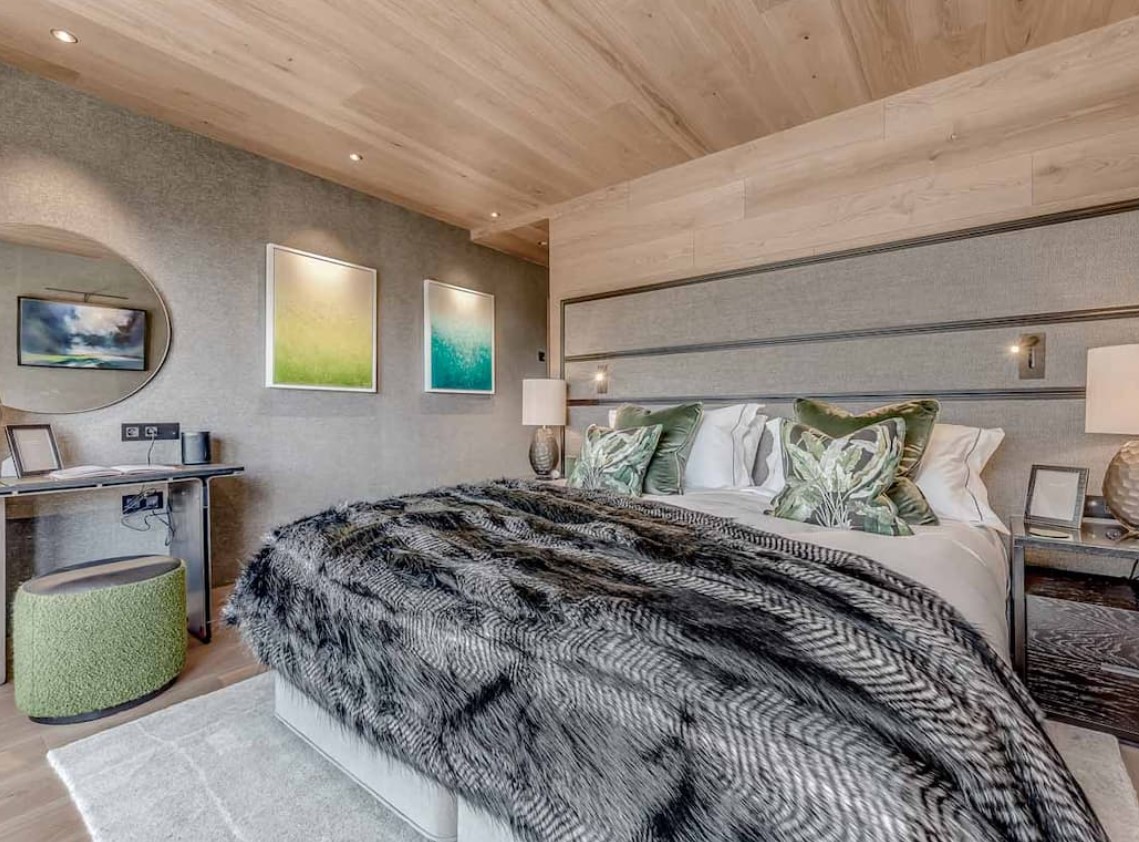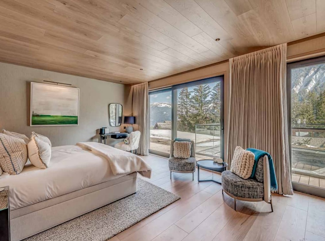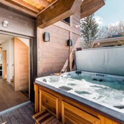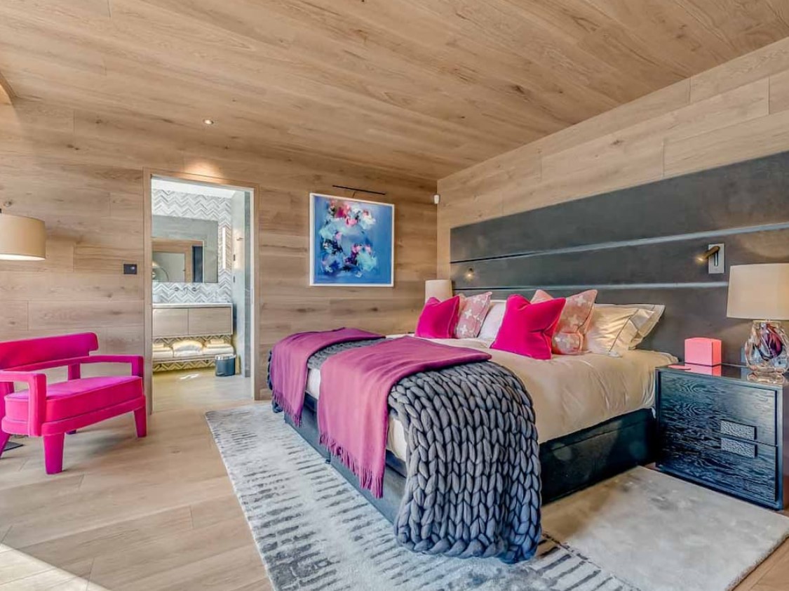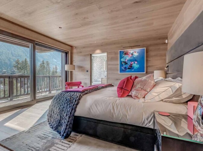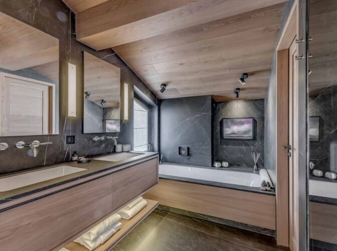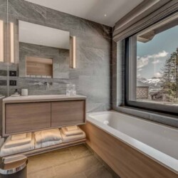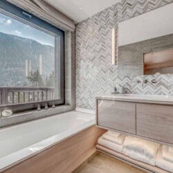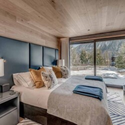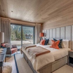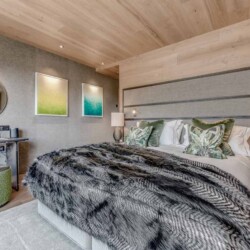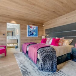 Seven sumptuous suites accommodate 14 guests. The large master suite on the top floor has its own private balcony. There are a further six en-suite double bedrooms divided between the first and ground floor levels of the chalet. The rooms all have access to an en-suite bathroom or shower room as well as a balcony or terrace.