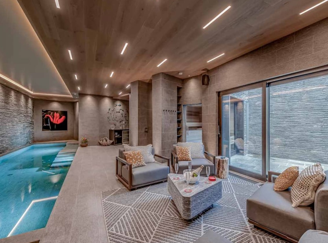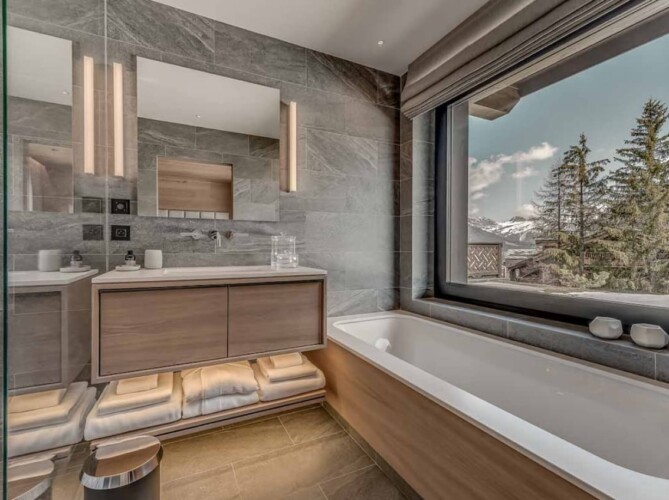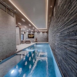 Tailor-made for relaxation, Chalet Bacchus has a superb spa complete with 10-metre pool and adjacent sunken Jacuzzi. There is also a sauna and hammam as well as an outdoor hot tub on the second floor balcony. Further opportunities to unwind can be found in the home cinema room on the lower ground floor which is equipped with the latest technology and plush tiered seating.