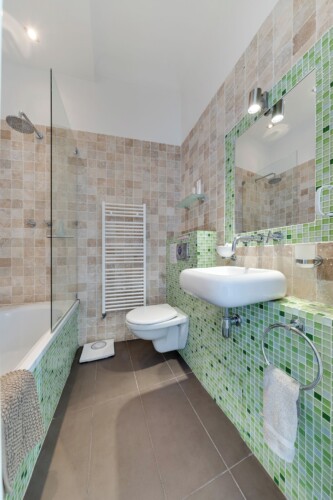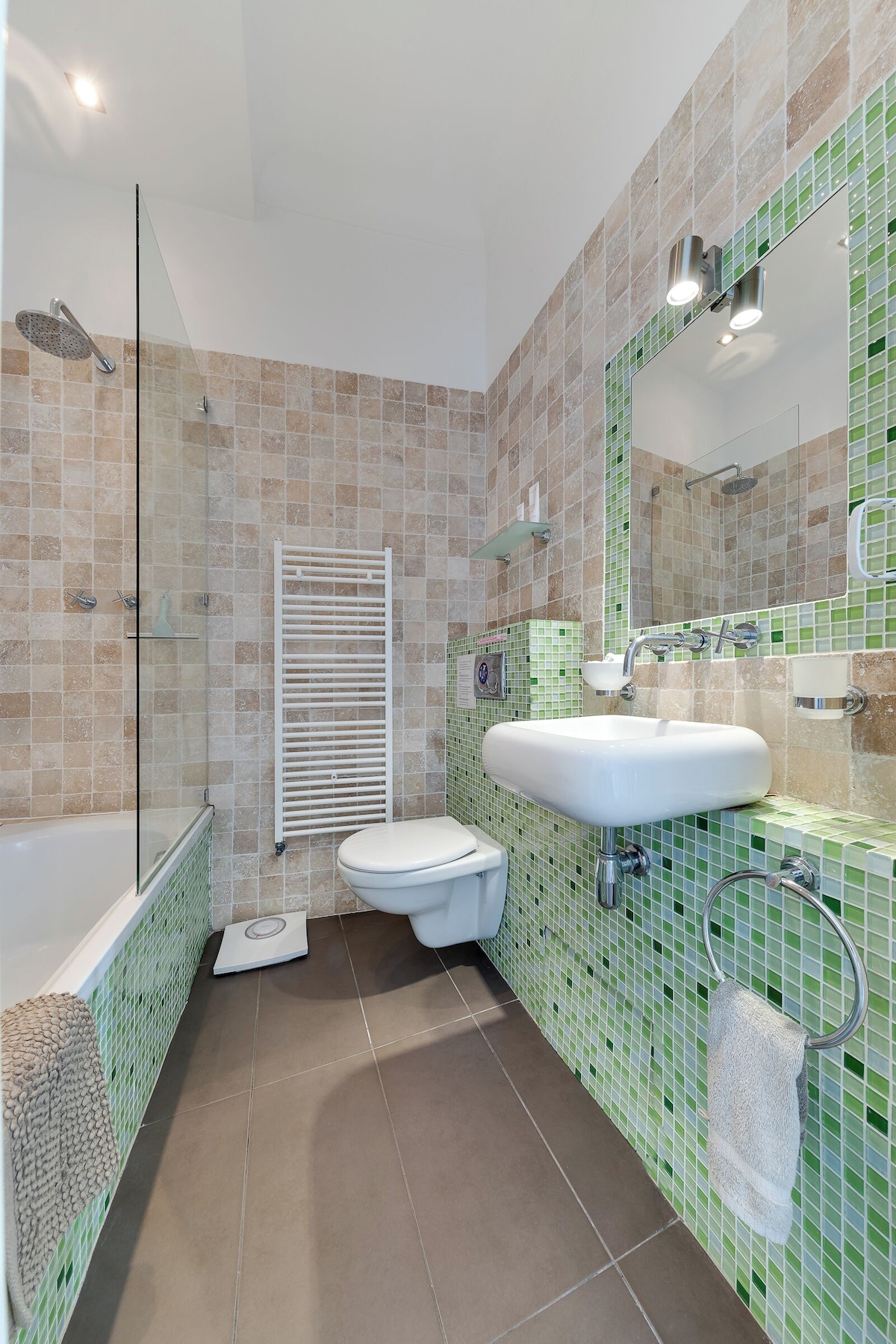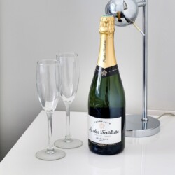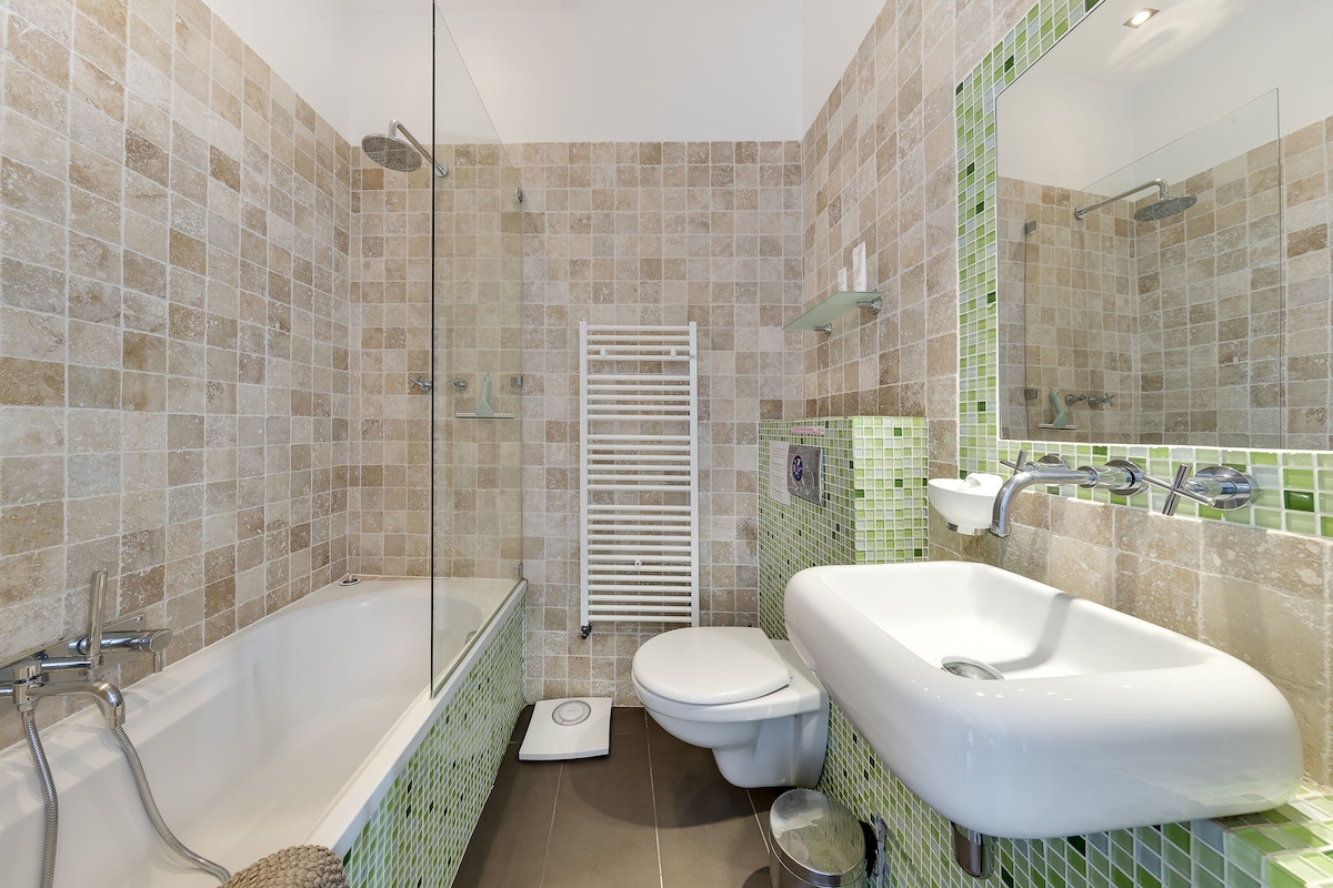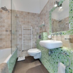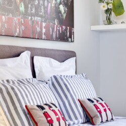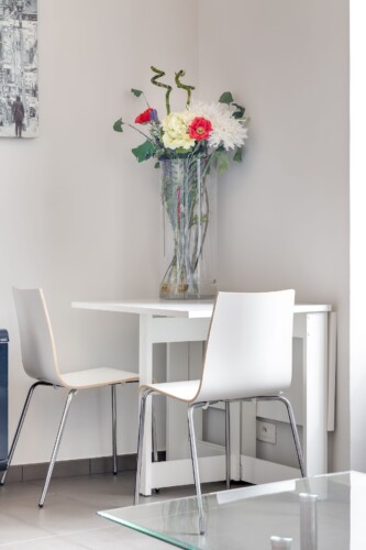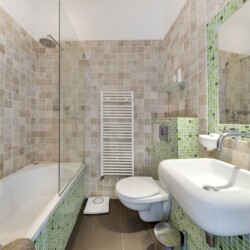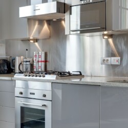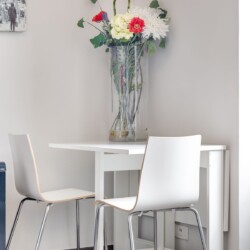 The apartment has neutral decor (Farrow and Ball “ammonite” light grey walls, matt chocolate ceramic tiled floor) 24 Hour hot water, fans for the summer and central heating for the winter.