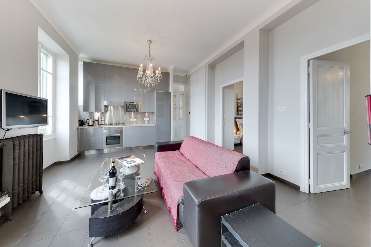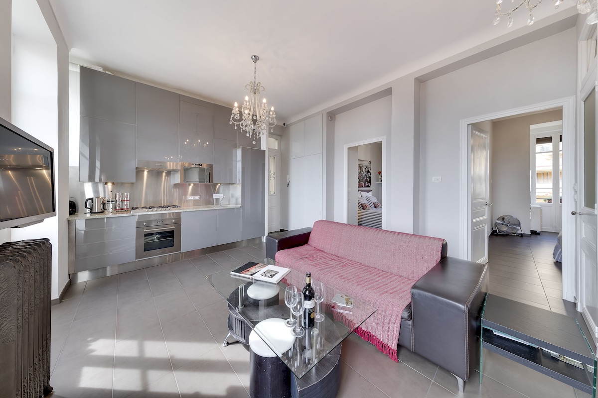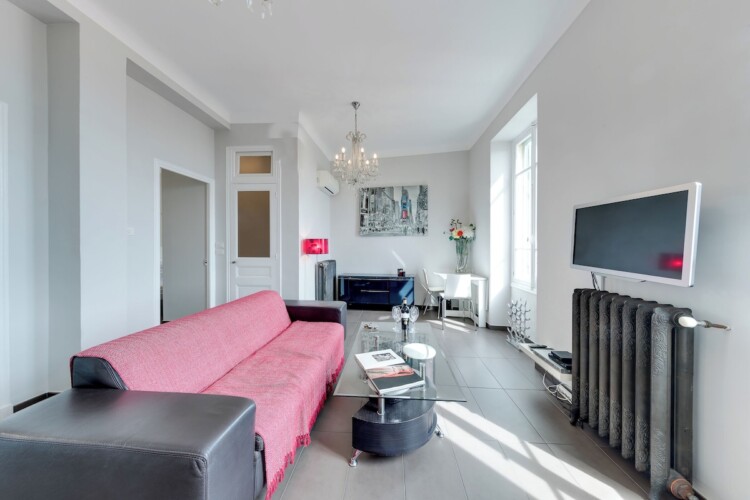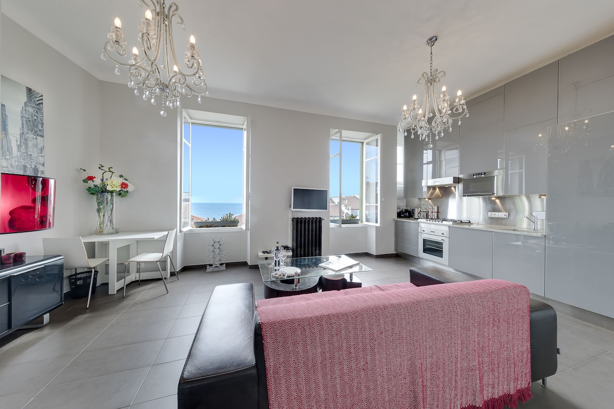 This light and airy apartment is filled with light, has high ceilings and a nice seaview. It has a view of Monaco and the sea from the living room where there is a good view of Monte Carlo Sporting Club fireworks throughout the summer months.