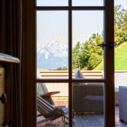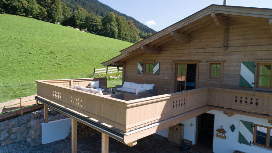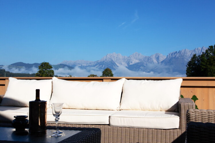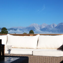 Your ski in ski out chalet in Kitzbuhel with space for up to 10 persons is located at one of the most sought after and exclusive locations in Kitzbuhel. The quiet Roemerweg lies on the sunny side of the valley, at the foot of the Kitzbueheler Horn skiing mountain, next to its skiing slope number 5. Your chalet offers sun from morning to evening, and you will experience breathtaking views unto the Wilder Kaiser mountain in the north and the famous Hahnenkamm ski race slope in the south.