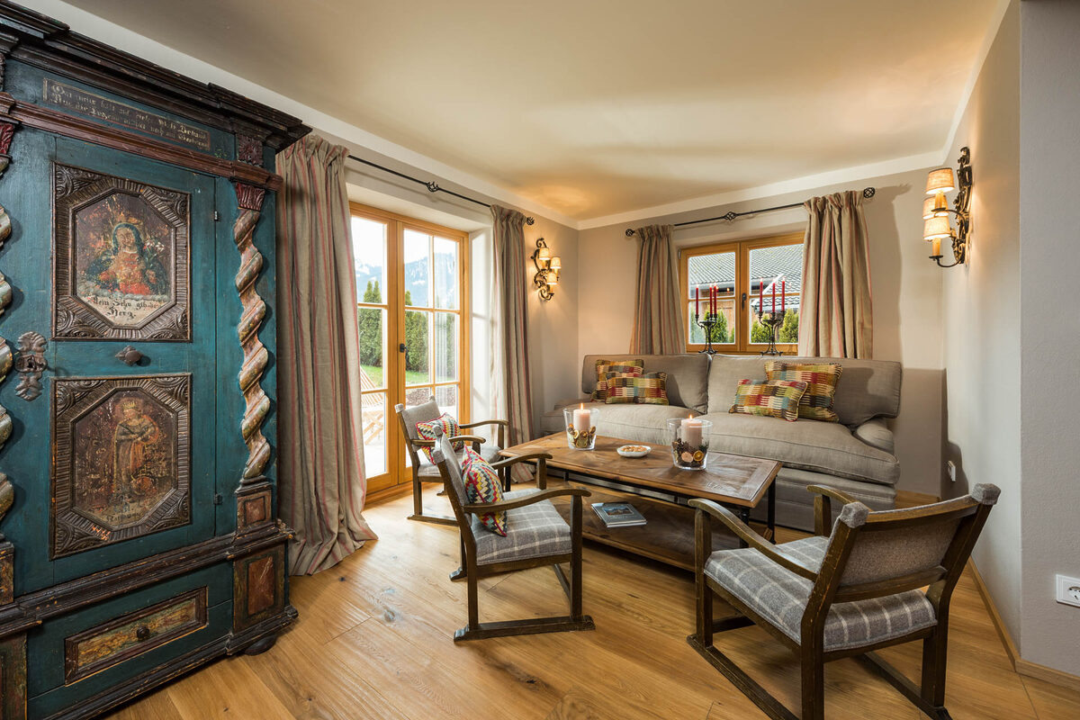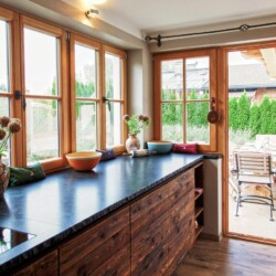 Your chalet has been completely refurbished in 2018, and we are now very happy to offer this cosy home for short and long term rentals. In the course of the refurbishment all windows as well as inner and outer doors have been replaced with matured timber and the whole house now offers floor heating beneath an oak wood floor. Additionally, all baths have been completely renovated, a new kitchen fitted, and all the furniture was modernized in combination with selected antiques, which is why your chalet holiday retreat now presents itself as one of the most beautiful of the chalets in an alpine character.