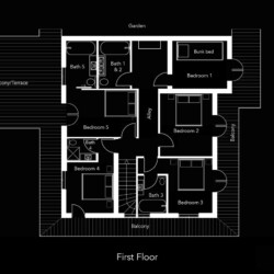 2 bedrooms with box spring double beds and en-suite bathroom with bathtubs and showers.