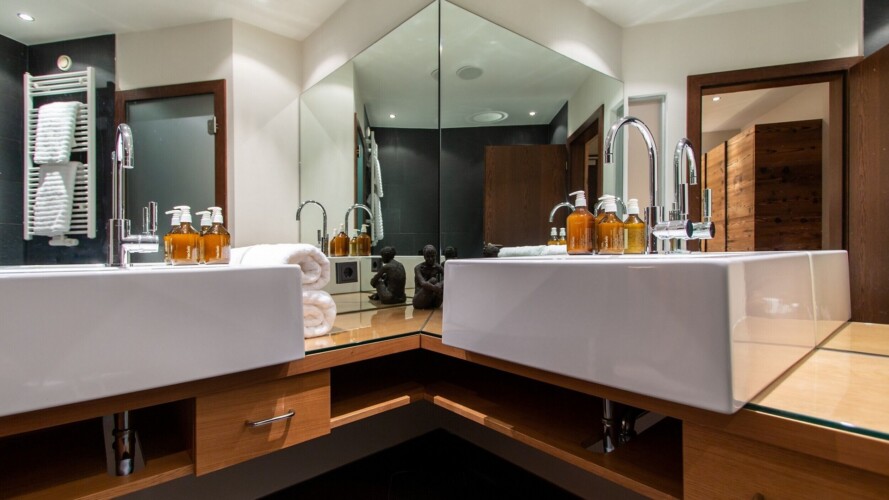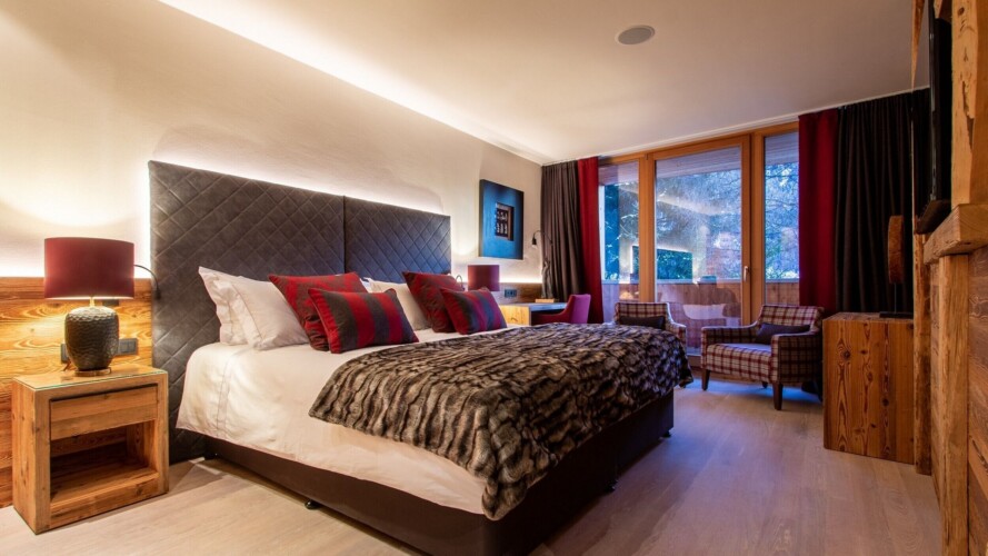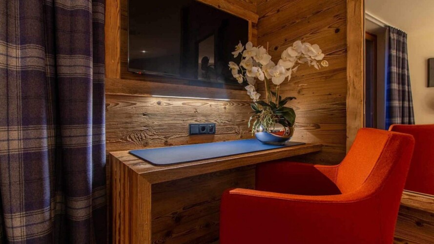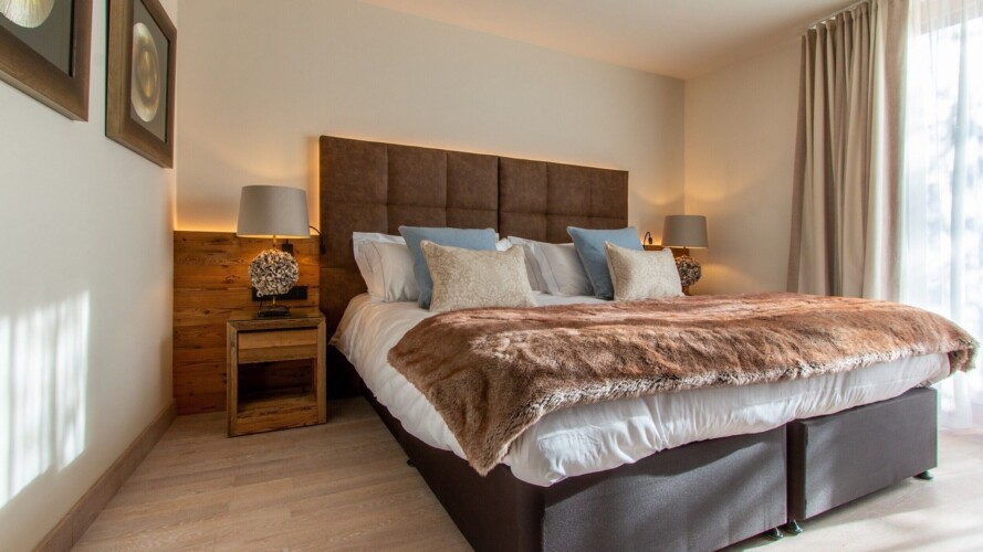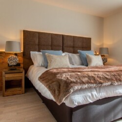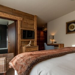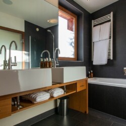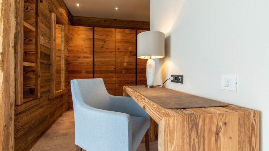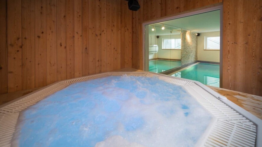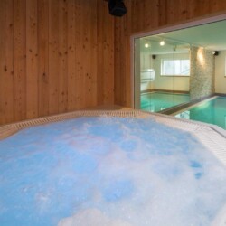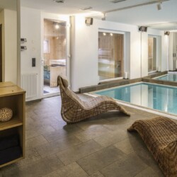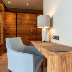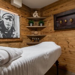 At ground level, alongside the boot room, the chalet boasts wonderful spa facilities, including an eight-metre swimming pool, wet room, sauna, steam room and an indoor hot tub. If you still have aching muscles after all that, there’s a treatment room so you can book massages or other treatments.