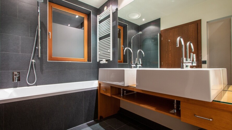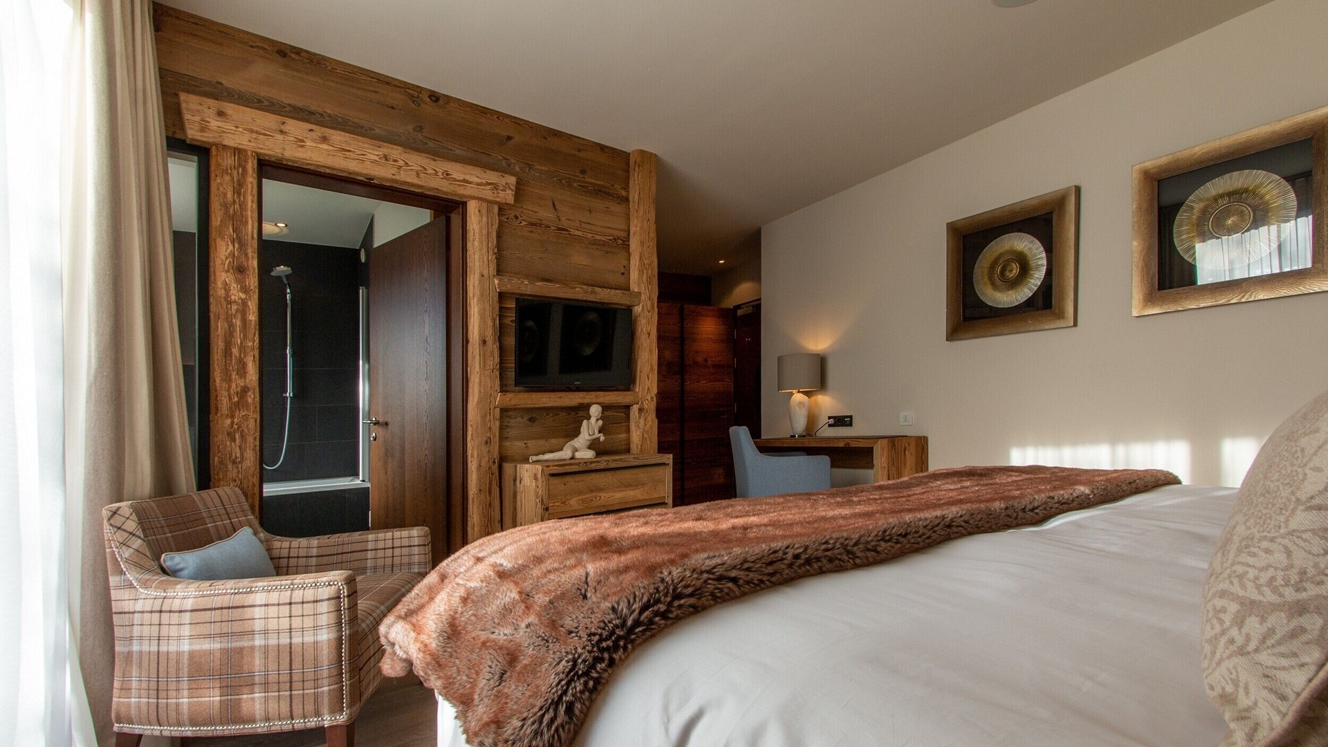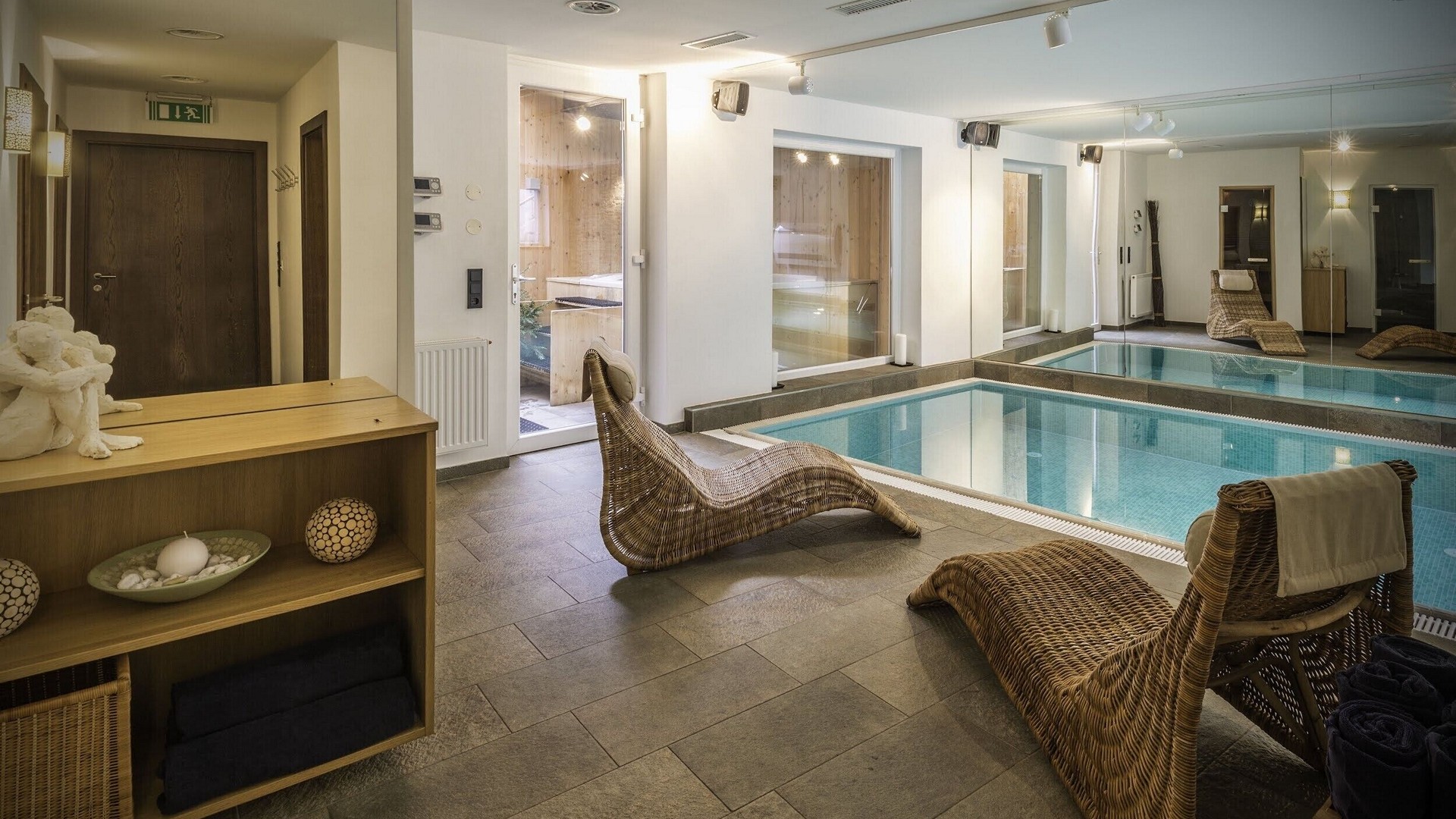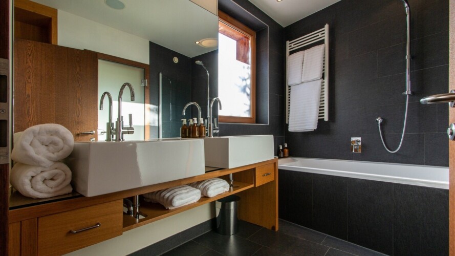 At ground level, alongside the boot room, the chalet boasts wonderful spa facilities, including an eight-metre swimming pool, wet room, sauna, steam room and an indoor hot tub. If you still have aching muscles after all that, there’s a treatment room so you can book massages or other treatments.