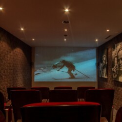 This lower level also boasts a private cinema room, complete with red velvet cinema seating.